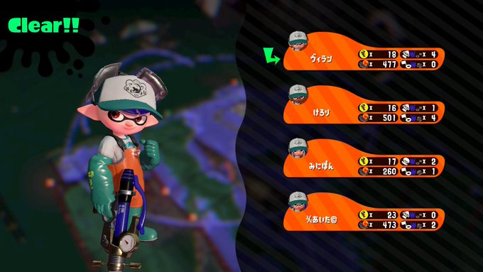 19時~21時の間フレンドのけろりさんとサーモンランをやりました(*´∇`)