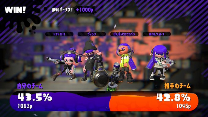 19時10分~20時、20時30分~20時50分の間フレンドのよっちゃまさんとよっちゃまさんの息子さんとナワバリバトルをしました(*´∇`)