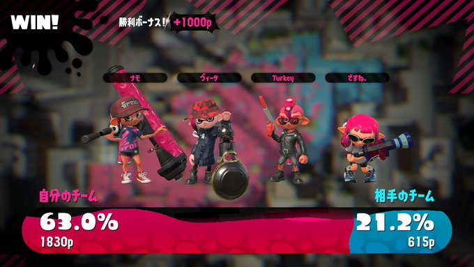 21時30分~22時15分の間フレンドのナモさんとナワバリバトルをしました(*´∇`)