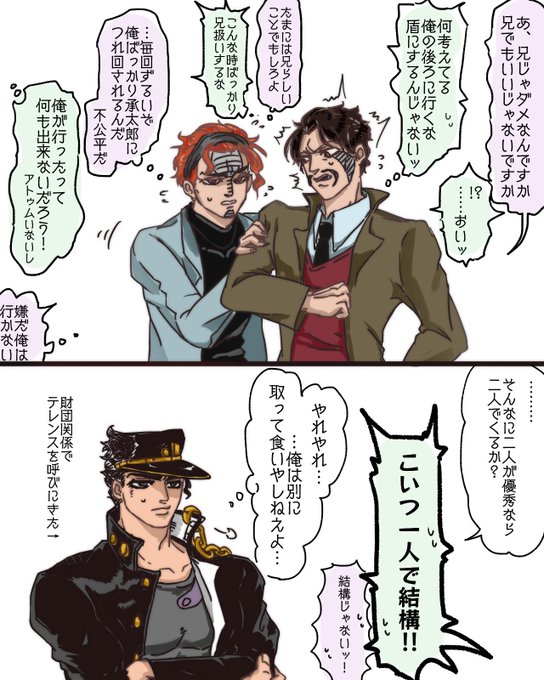 リク箱から「承太郎にビビって兄の後ろに隠れる弟と盾にされてビビってる兄と呆れる承太郎」