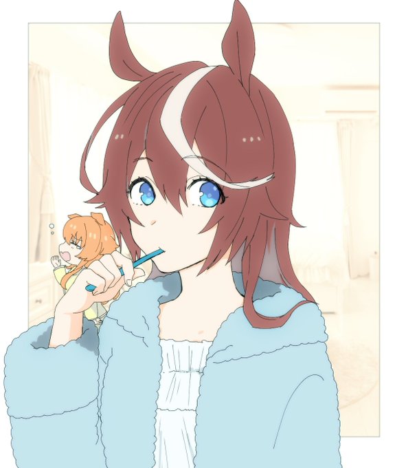 朝のまだ髪の毛セットしてないしルームウェアなテイオーを拝めるマヤノがうらやましいなあああああ!!! #2021ましたの宿題1w1枚