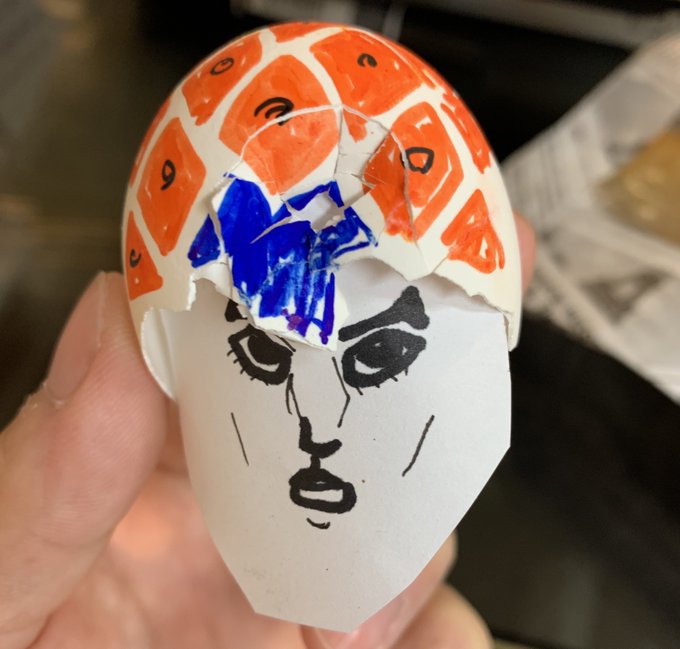 お父さんが卵の殻に描いたミスタ見て 違和感ないでしょ! #ジョジョ