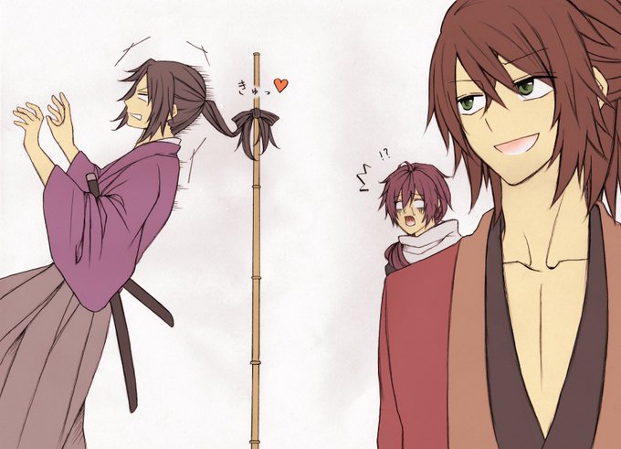お題「からかう」 沖田:モテ男は辛いですね~ 土方:はうっ!? 斉藤:なにゆえ竹が!?? 突然の竹 #薄桜鬼版深夜のお絵かき60分