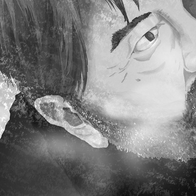 自分でも不思議でモノクロだけはどうもデジタルでしっくりいかない事が多い。今回の新聞連載も手描き。過去挑戦してできたものもあるがデジタルだと明度コントロールがしっくりこない。左上がフルデジタル、左下がフル手描き、右上下は光、煙、雪の部分だけデジタル。#イラスト