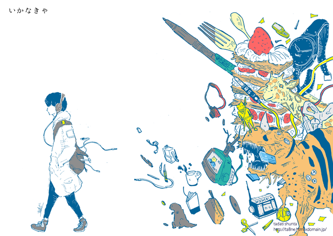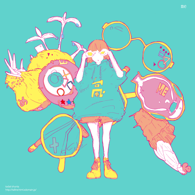 ボールペンで描いた線を鮮やかな着色しながら、自分の世界観を表現しています。そのときの思いを、感情を、さまざまなモチーフに変えながら描いています。