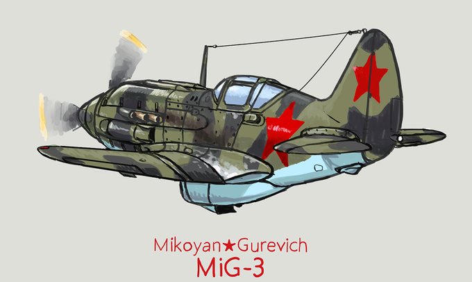 MiG-3戦闘機のデフォルメ絵を描きました。