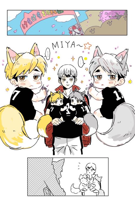 ケモっ子幼稚園の入学式のセリフなし漫画 ※クロスオーバー ※下に年齢操作 (みやんず、ししょ、しゃおへと保護者たち) ともだちできるかな?
