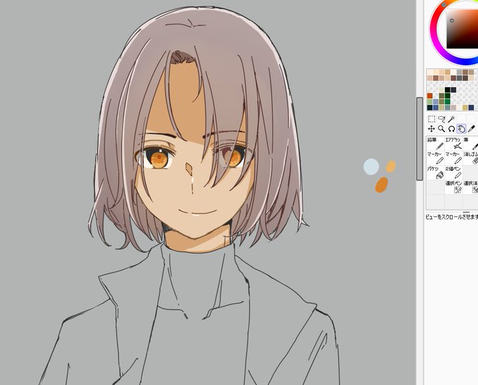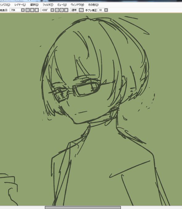 ここまで描いて気づいたんだけど、前に別で立ち絵描いたんだった。どっちにしよう。めがねっぽいのかけてもう満足したわ