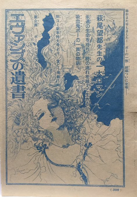 @kirisour 「エヴァンズの遺書」は雑誌連載中に読めた初めてのポーの一族だったので、残しておきました。😊前編後編共に。 お知らせイラスト