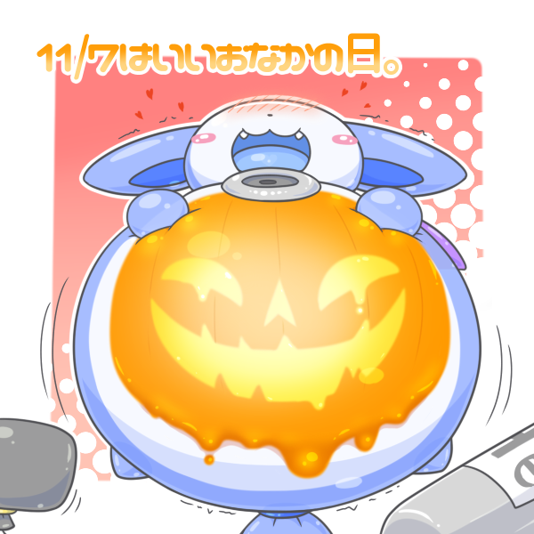 本日はいいおなかの日っ! ハロウィンの時にやり残していたカボチャおなかをやりながら貰ったヘリウムを早速楽しんでるようですねぇ、ぷくぷく丸くなってイルーンはとても幸せそう…🎈🦇💕