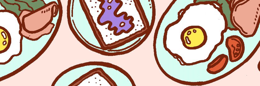 朝ごはんを描いてます。色数をもっと絞りたいと思ってるんだけど、描き込むとどうしても色をたくさん使いたくなってしまう! #マンガが読めるハッシュタグ #漫画が読めるハッシュタグ #エッセイマンガ #デザフェス #デザフェス56