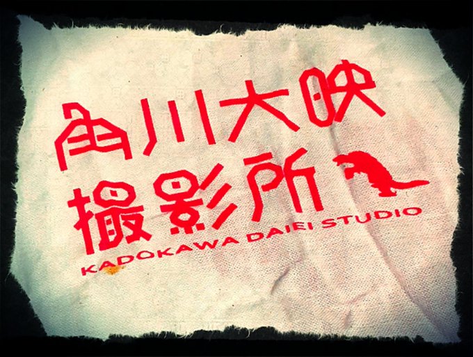 ガメラのイラストがあしらわれた、角川大映撮影所の手拭い。