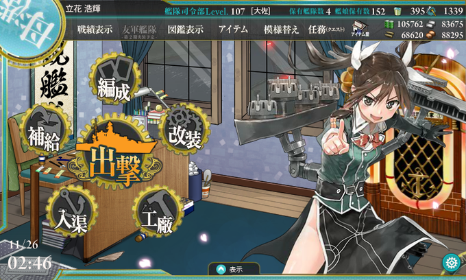 最初は時間かかりそうな海域で尻込みしていましたがドラム缶たくさん持たせたら周回数少なめにクリアできました。バケツはけっこう使っちゃいましたね