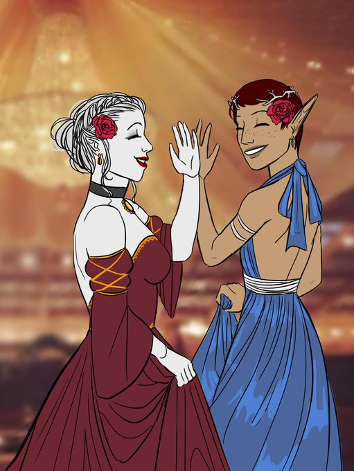 my dumb bard son and his vampire husband are off on their honeymoon!! (yes I know the rings are on the wrong hands shh)
