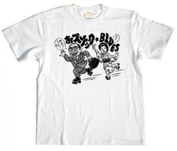東陽片岡さんの描きおろしイラストをあしらった「おスナックBLUES Tシャツ」、通販でもご購入いただけるようになりました。https://t.co/OP6queD9CF