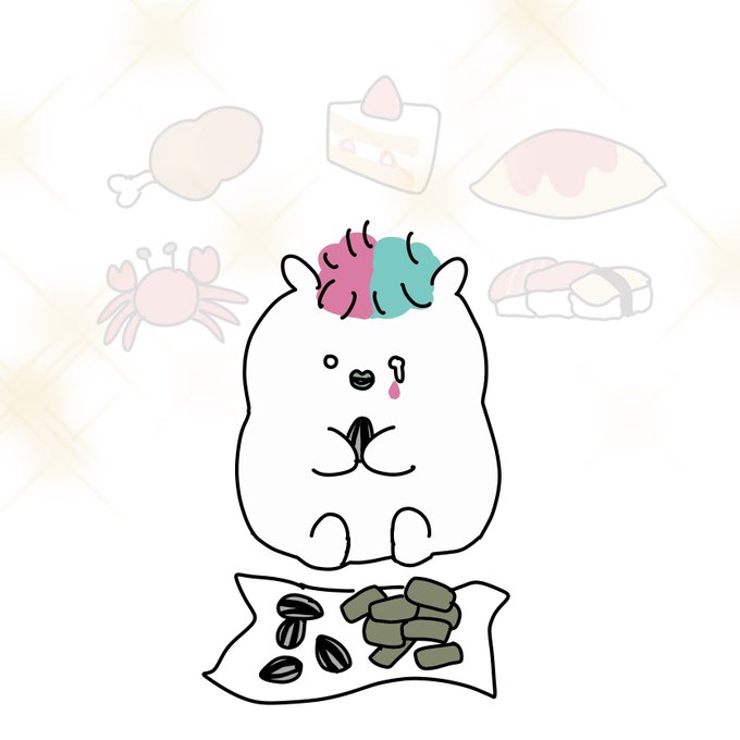 お題箱より「行き倒れていたところを見知らぬ人に保護されごはんをご馳走になるハムちゃんと明太子さん」です🍽 過剰もてなし