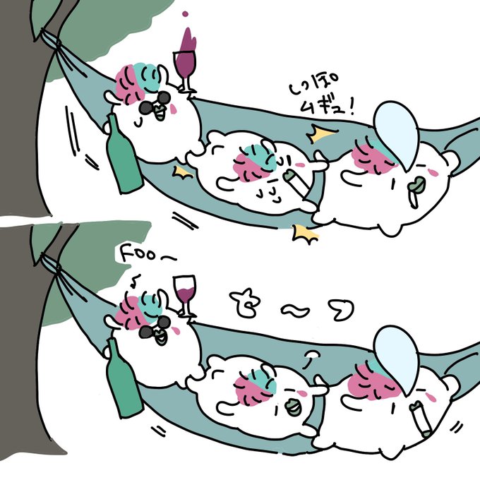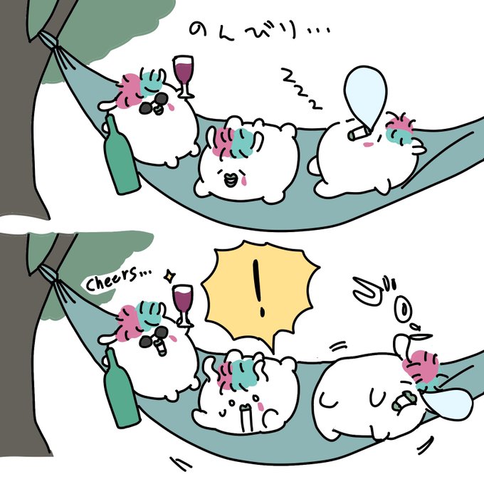 お題箱より「ハンモックでゆらゆらお昼寝ハムちゃん」です🏕 やっぱりトホホ