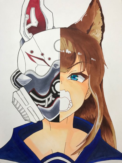 左側の立体感が出せずに 悩んどる... 右の目のグラデが怖くてできん。 あ、完全に詰んだわこれ。 #イラスト