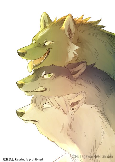 ありがとうございます! 過去絵で申し訳ないですが狼達の獣人バージョンです! #こりせんまん #こり5巻イラリクチャレンジ ※過去絵