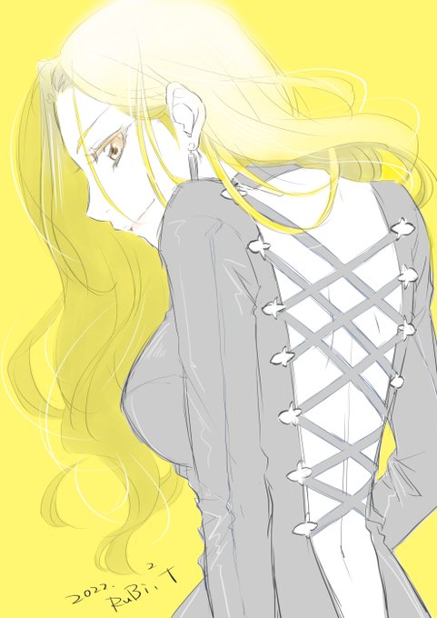 【黄】 ものすごい大遅刻ですが…!(すみません…) TOAR・キサラさん。 背中とお尻がとてもいいですよね…(鎧の下のスーツの資料がないので想像ですす) #テイルズ版深夜の真剣お絵描き60分一本勝負