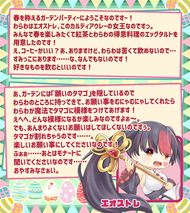 【春を称える幻想のタマゴ】 4月初クロスアルモニー期間限定ミニイベントです!よろしければ参加してみてね! #クロスアルモニー #清和を詠う春光庭園