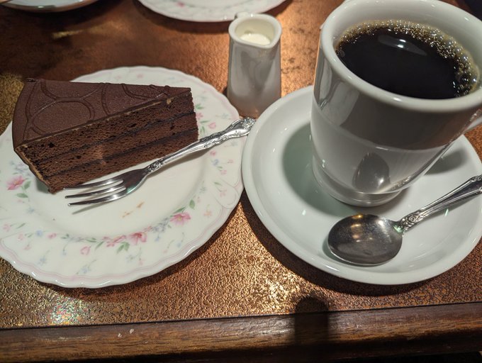 喫茶ビクターのケーキセット チョコレートケーキ