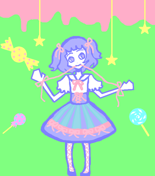 隊長は、コットンキャンディーから生まれた魔法のステッキを持っている女の子。自分は魔法使いだと信じている。孤独がお友達。最期は鳥かごに閉じ込められて消える。 #sho-jyo http://t.co/By8jXAdezg 描いた