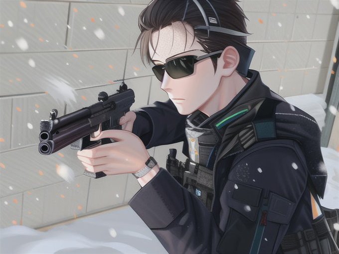 ④→スーツサバゲーの人をテーマに描いてもらったの