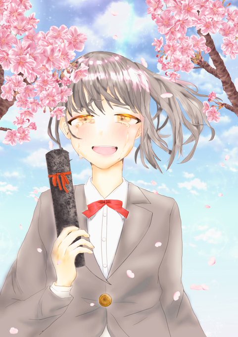 卒業の季節ですね(白目) 結構違和感ありますが見逃してください( ˘ω˘ )スヤァ… 何でも素材に頼る癖やめたい… #卒業編2022 #デジタル初心者 #イラスト好きさんと繋がりたい
