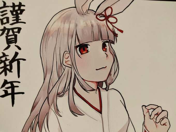 年賀状用にうさぎのイラストを描きました🐰 右向きの顔が苦手なんですが、今回は上手く描けたと思います✨