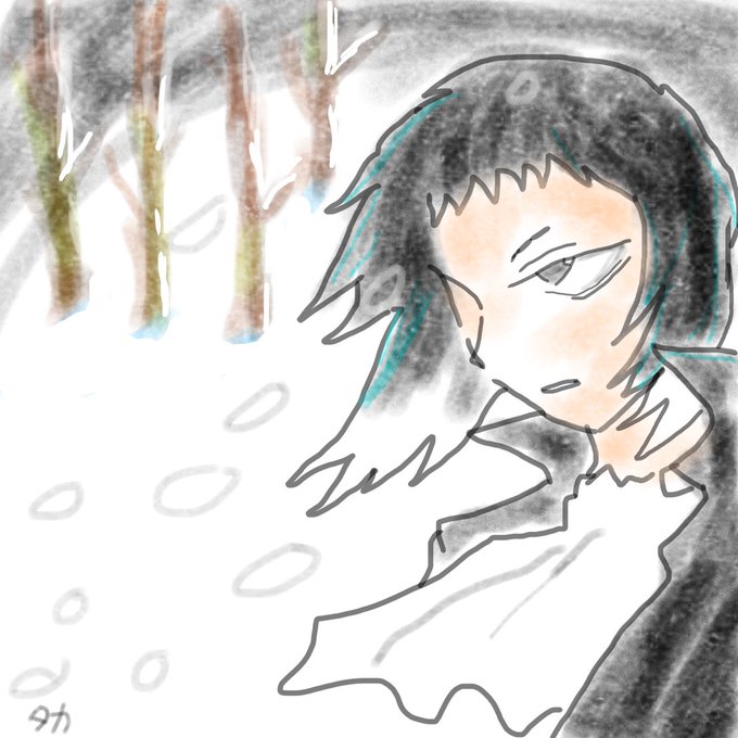 #中芥わんどろ・わんらい 第8回 お題 雪 雪の中任務に出かけたちゅやを想うあくたさん。 と言う設定で描いてみました。
