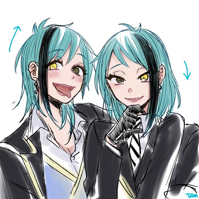 #twst女体化 【女体化】 フロは上から見下ろすようにジェは下から舐めるように相手を煽ってほしいなっていう落書き ちなみにフロは外はねジェは内巻き ベストの合わせを間違えた…