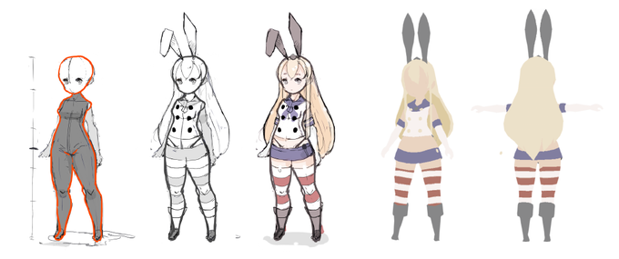 デフォルメの練習をしまかぜでしてました。そのあと急にモデルにしたかったのでしてました。とりあえず全体的に形をつくってみたので、ディテールはまたしっかり描きながら、骨入れつつポリゴン割ろうかと思います