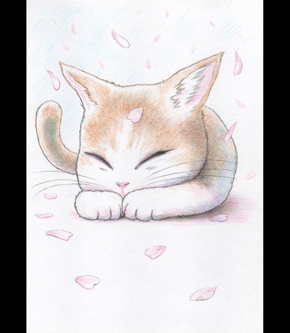 #色鉛筆画 #鉛筆画 #絵描きさんと繫がりたい #イラスト好きさんと繋がりたい #猫 #アナログイラスト #桜