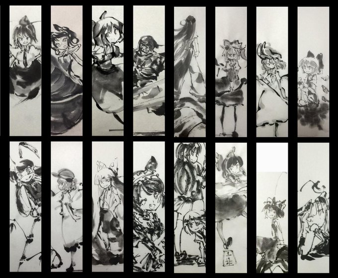 最近pixivに投稿してなかった水墨画まとめたら56枚になりました。チリツモ大和撫子。