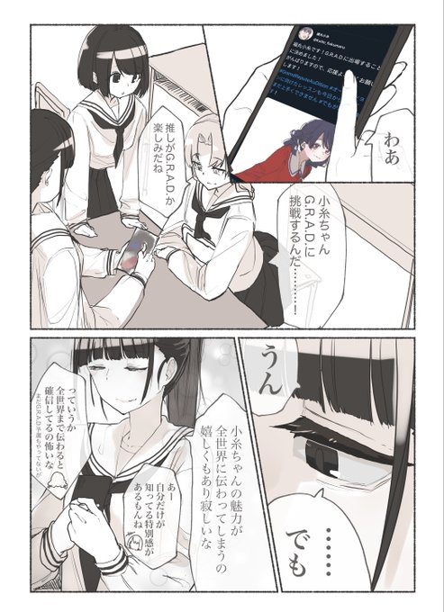 【おみくじ結びますか】福丸小糸にでてくる中学生モデルちゃんが、小糸ちゃんがG.R.A.D.に出ることを知った漫画です。 #シャニマス #隔日お絵かき