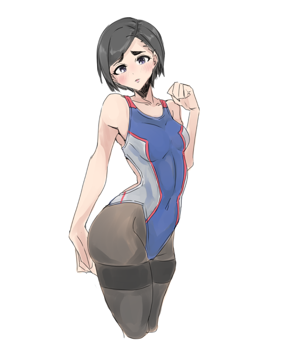 お題箱から松尾千鶴と上条春菜の競泳水着(+タイツ)