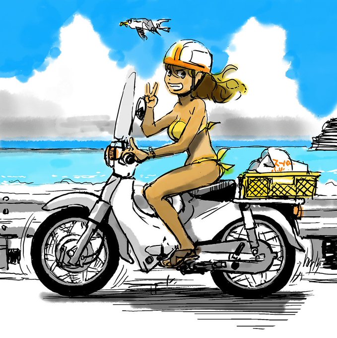 どうも自分はバイクを真横から描くと、鳥を並走させる癖があるな。マンガまだ、手を付けていませ~ん\(^o^)/