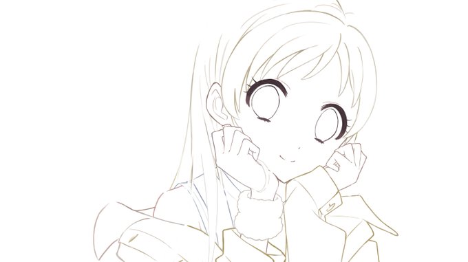 #皆さん線画と塗った後を見せてください 眉毛ないなった