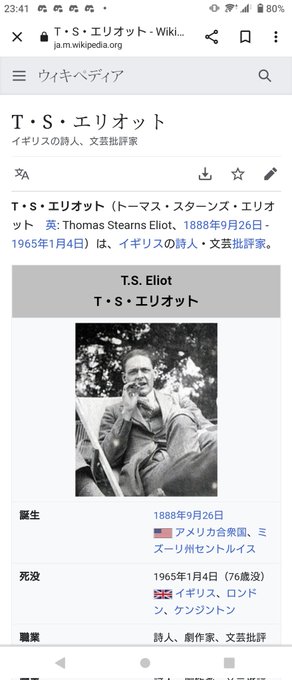 ミーティアの言ってる詩人のエリオットってこの人かなぁ
