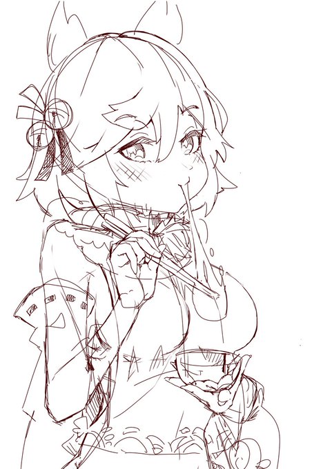 120/100日目 吹雪を描くって約束だったからね、書初めに…… (最初左手に箸を持たせていたが、どうやら人の子たちは右手で箸を使うのが一般的らしい) #一日一絵