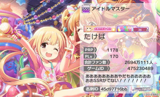 アイドルマスターになれたので更新します。 双葉杏担当のたけばです。P歴5年目です!よろしくお願いします。 #デレステ #デレステ名刺 #デレステPと繋がりたい