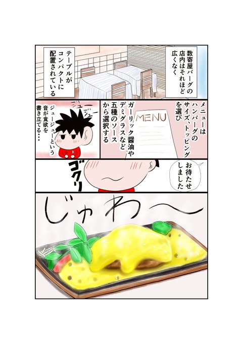 ~熱々ハンバーグ~漫画コミックエッセイ 数奇屋バーグの熱々肉汁ハンバーグ 香ばしい香りとジューという音がたまらないです! #イラスト #絵 #絵描きさんと繋がりたい #イラスト好きな人と繋がりたい #ハンバーグ #夏 #食べ物 #グルメ #ランチ #美味しいもの #漫画 #エッセイ漫画 #銀座