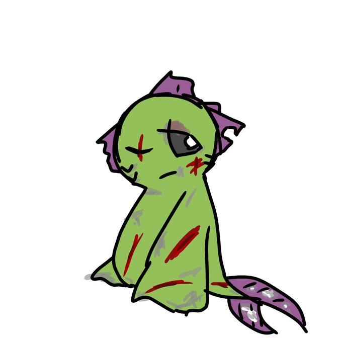 まともなやつこんなやつかな メロウくんと色合いが似てるよ 親戚だよメロウくんより年上だよ まともなやつだよ 名前はまだない
