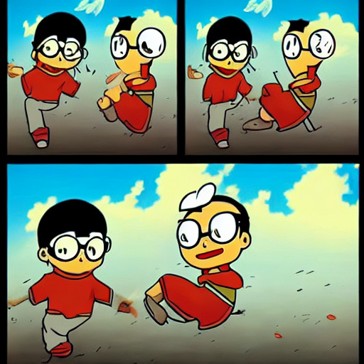 Nobita saved Gian from an explosion.