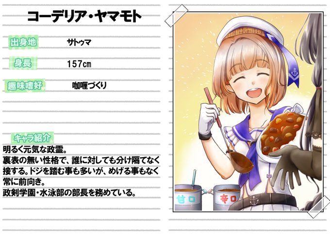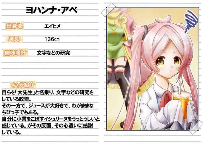 この政霊紹介の画面構成としてはノートに文が書いてあって、隣に該当政霊の写真を張り付けている…という体で描いているんですけど、この写真はあれですね。間違いなくヨルディスの自撮りですね。