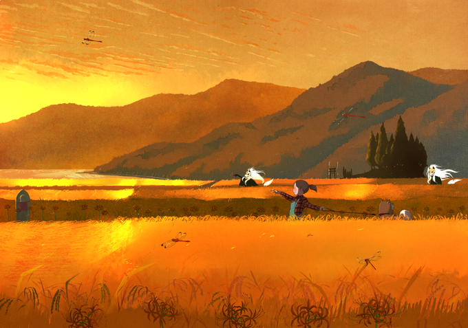 長い間、季節のお便り頂いたりパイロット版観に行ったりでワクワクさせて貰った「この世界の片隅で」今年はとうとう完成版を観る事が出来て嬉しい出来事でした。自分の中で、感謝をこめた一枚を年内になんとか色付きで描きたかったのです。