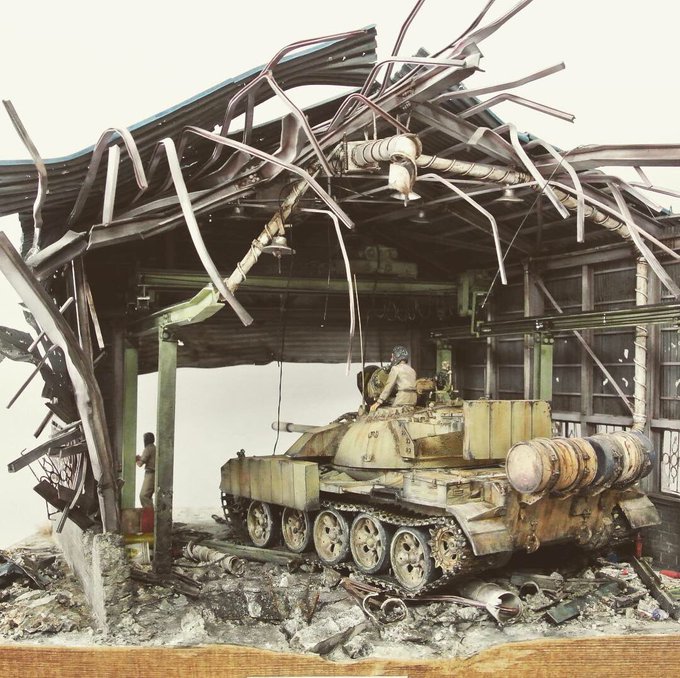 友人が経営する #福猫堂 さん、7月になったので展示物入れ替えしました。半壊した金属加工工場に潜伏するエニグマのジオラマです。 https://t.co/whmDUbpIsS