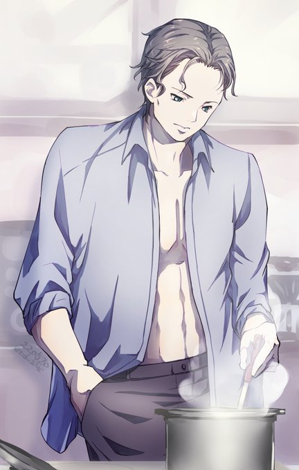 並べて自カプ絵にする第二弾 あかいの家にお泊りしたひろ、朝方キッチンに立ってるあかいを妙な気分で眺めているってわけ 料理できるようになったと聞いてはいたけど、その様子は初めて見るひろ