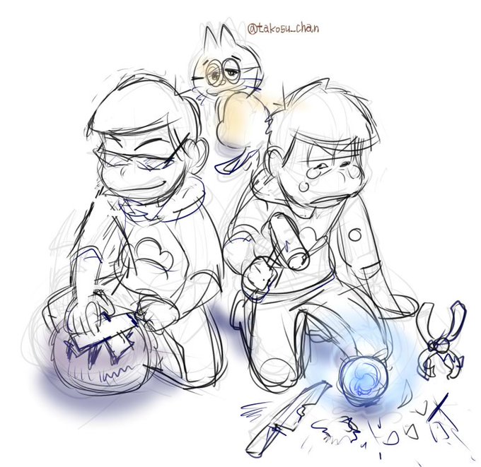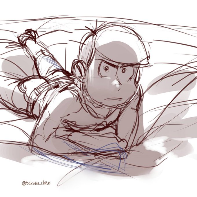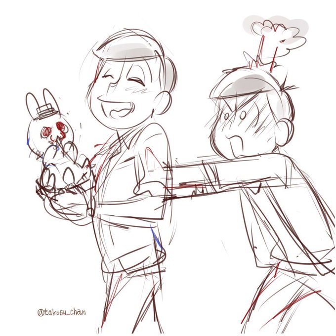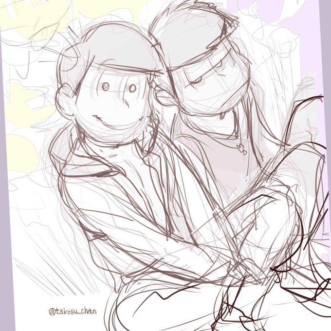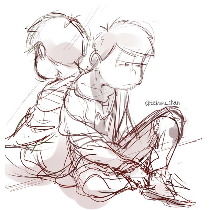 ラフでとまってるやつ ハタ坊回のナデナデ 目を合わせずにえびせんを共有する長兄 サングラスでボケるチョロ松と、材木 数字とお花